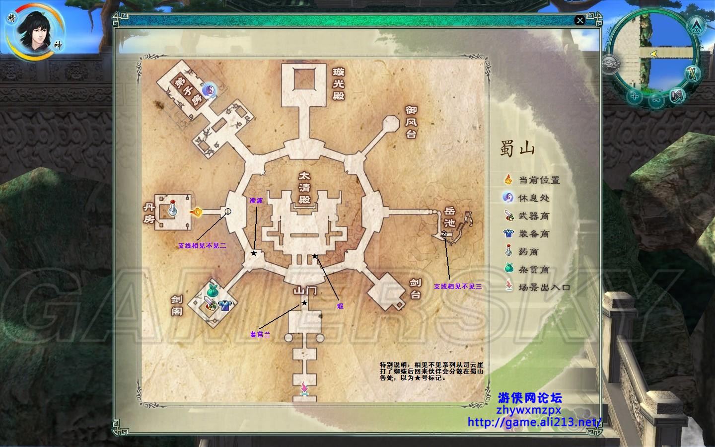 飞回蜀山,然后系统提示伙伴分散在各处,可以找其谈谈心,和地图上标注了位置的伙伴聊聊就去休息处休息吧。到了晚上,去御风台继续剧情。一下来到三天后,先去丹房吧。然后再去到御风台继续剧情。( 这时候请去蜀山武器店买好装备,防具男性的衣服和鞋子买2套,女性衣服3件,武器3件 )然后又去休息,然后又来御风台(喂!让玩家这么跑来跑去很好玩是吗?)