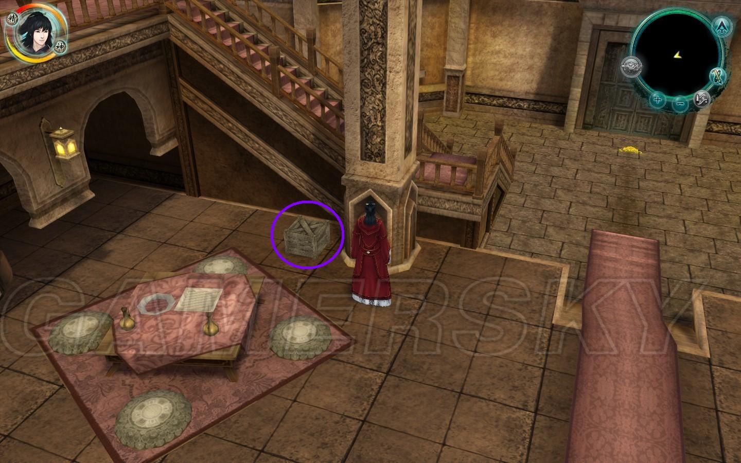 飞去碧溪村,走到杂货店位置触发支线,得到第五卷的逍遥游,完成后又立即收到一封信,这时候飞去楼兰吧,刚飞到楼兰面前就会看到一个老头,走上前去剧情继续,在图中位置木箱找到卷四,然后此线暂时告一段落。