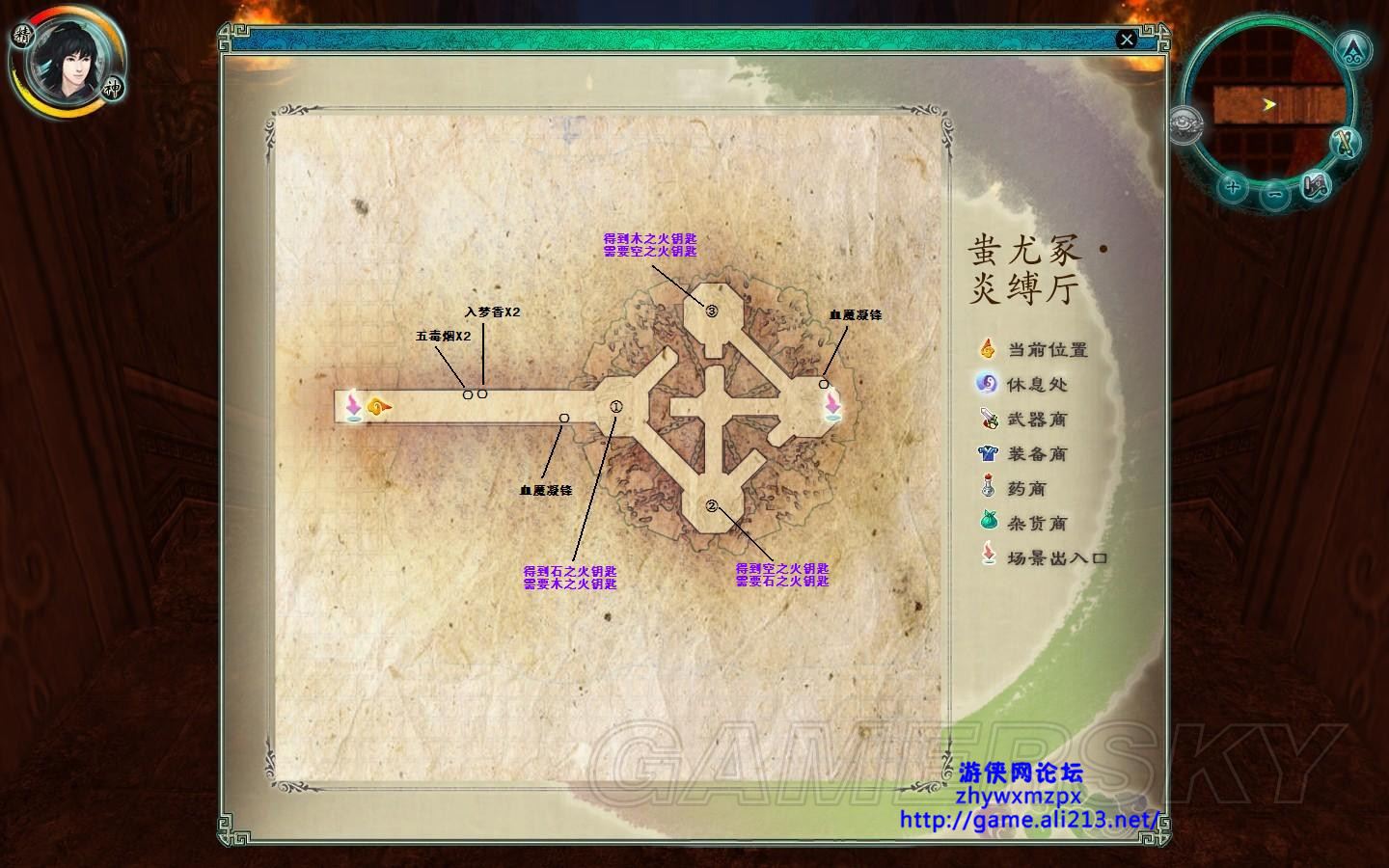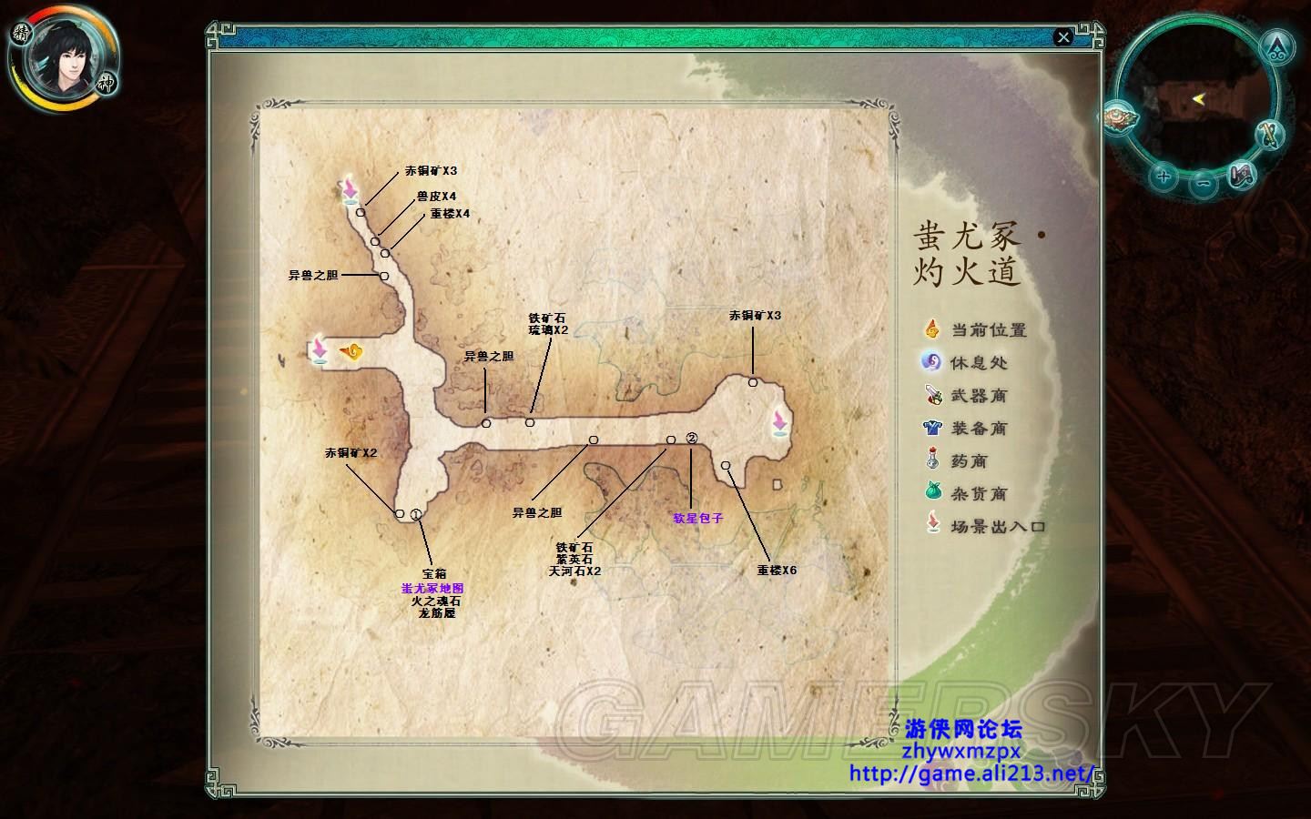 这张图没什么多余能说的,先去①处拿地图,这里有只小凤凰,以我的能力测试是打不死的,两下他就跑了。 ②处有软星包子 ,然后去第二张图。