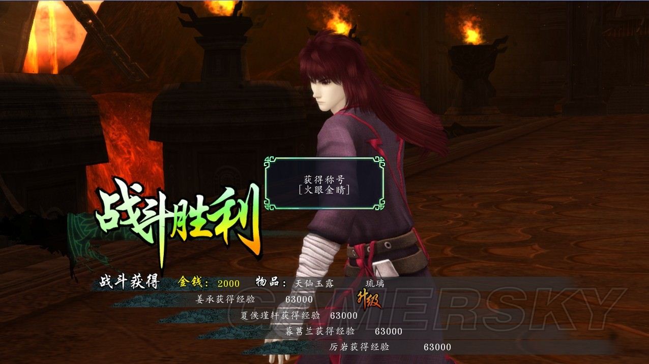 这boss打法很简单,称号是不使用水系仙术,厉岩上手3级火的天罡战气,暮菖兰给姜补烤鸭,夏侯群补,姜普攻,第二回合厉岩自己磕烤鸭输出,其他人循环,3回合就死了,合击连携全没用。(探云手:琉璃)