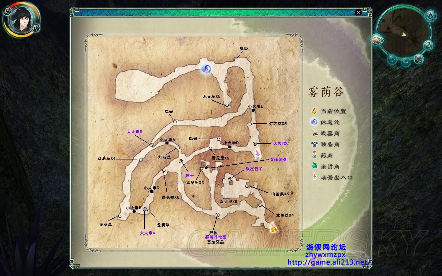首先去①处看见个尸体,翻下尸体能翻到地图,②处有软星包子,★处有个鬼魂,当点击他说不要再去打扰他的时候换成暮菖兰带队去对话,即可得到天香绿萼x2。